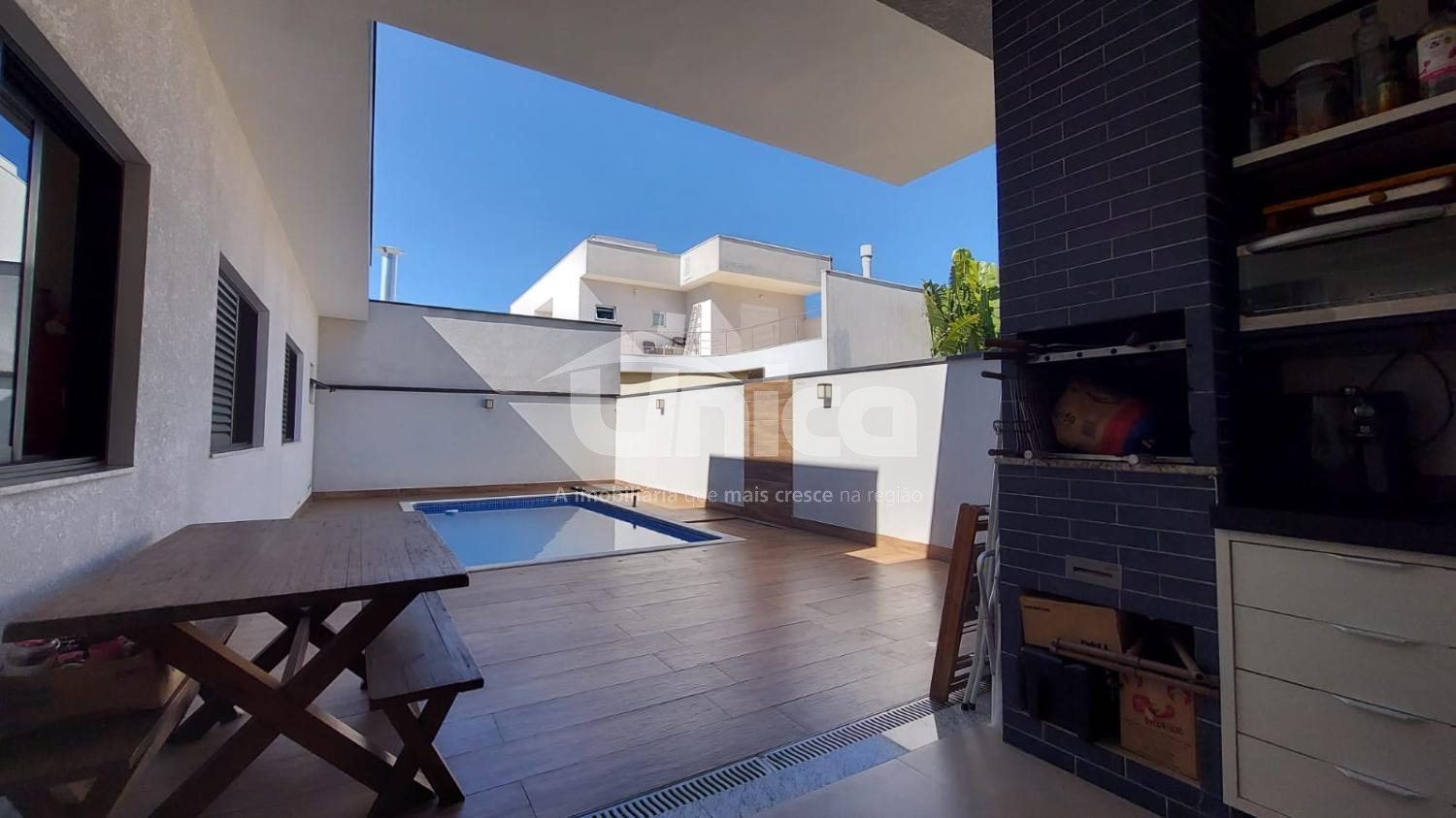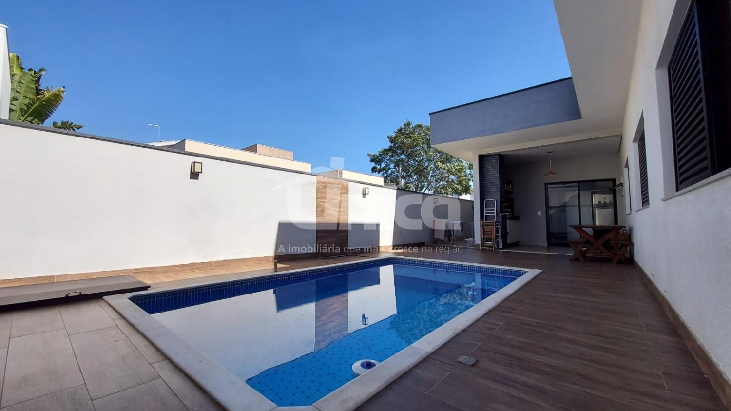 Quintal com piscina ampla;