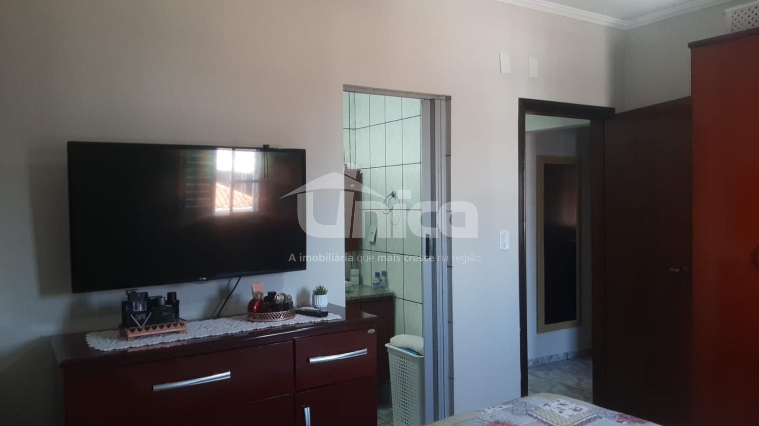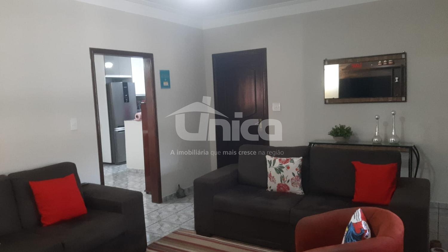 A casa conta com 3 dormitórios, sendo 1 suíte, proporcionando mais privacidade e comodidade para a família. A área social dispõe de uma sala espaçosa, perfeita para momentos de convivência, com ambientes bem iluminados e ventilados.